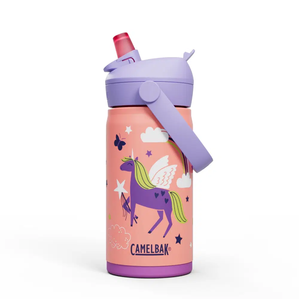 Vakum yalıtımlı paslanmaz çelikten üretilen Thrive Flip Straw Kids VSS 12oz şişemiz, suyu saatlerce buz gibi soğuk tutar ve küçük maceracınızın gün boyu susuz kalmaması için dökülmeden bir yol sağlar.